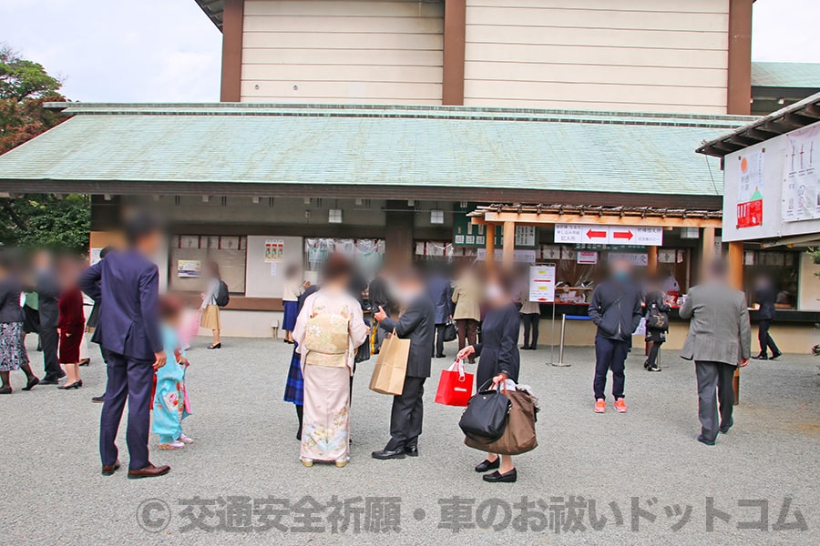 (当ページで紹介の申し込みと初穂料を渡した後の交通安全祈願の御祈祷から、車のお祓いまでの一連の流れも、こちらで詳しく紹介しています)