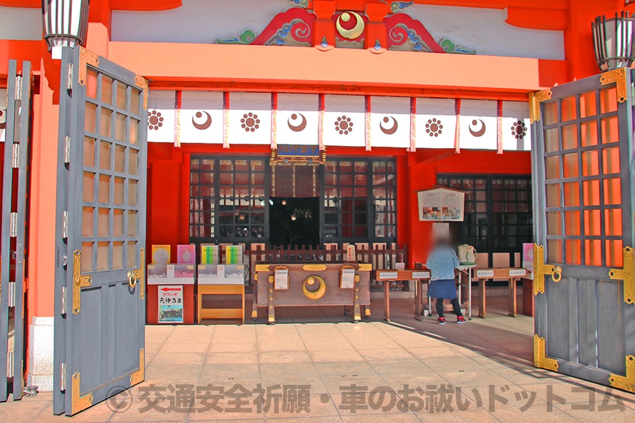 その日の行事などの状況により入口を変えているようで、運営者が参拝時には参集殿側に置かれており、参集殿側の入口が車のお祓いの車の入口になっていました。