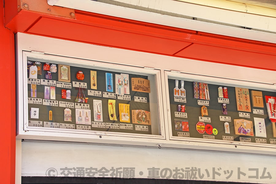 交通安全のものはもちろん各種願意のお守り、授与品が揃ってますね。