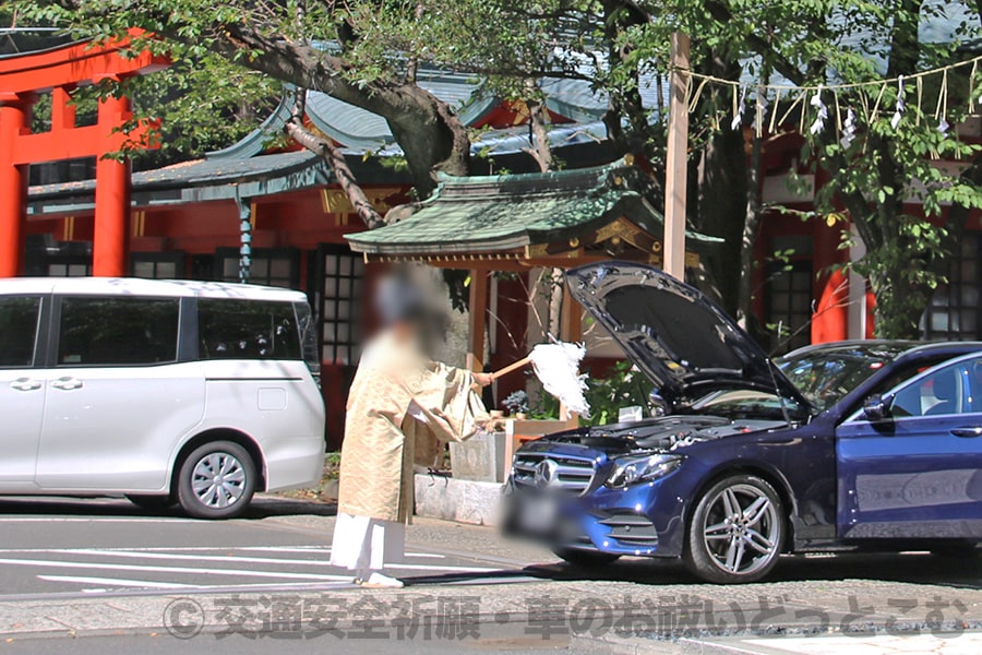 ※実際の神社での車のお祓いの様子|画像提供:交通安全祈願・車のお祓いドットコム